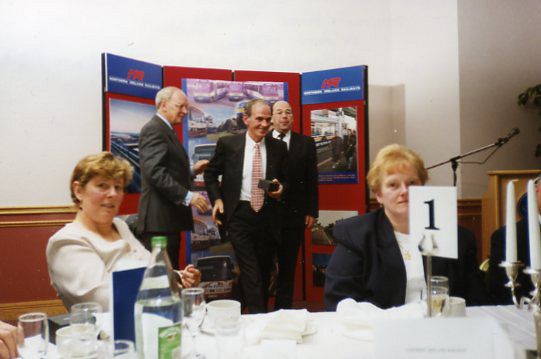 John Bonis at his retirement luncheon in Stormont Hotel, Belfast on 19th November 1996 with Mr Neville Whitehead, Chairman NIR
