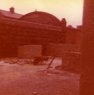 The photo shows the barricades in course of construction at the top of Joseph Street during the Ulster Workers Strike of 1974.