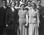 I must mention one Social Evening in particular, we were playing musical knees (it was the same principle, as musical chairs) only the young men had to kneel on the floor on one leg, with the other one raised ,so that his partner could sit on his knee, when the music stopped, the last one seated was out of the game. It was very competitive, well Roy and I were in the last two pairs, we were made to spread out the full length of the hall, to make it more difficult, the music stopped, we raced like mad to reach each other, we did ,but in so doing we crashed, but we won. Two days later Roy was in hospital, his knee the size of two, water had formed from our collision, he had to have electric treatment. Winning that night cost Roy a week of work. Still we won!!