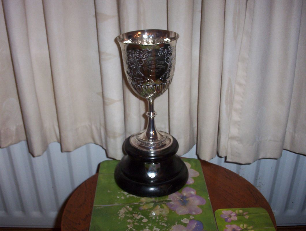 Photo is of dancing trophy won by Vera Gallery (nee Kane)in 1948/49. The trophy was won in 1948 in Lurgan Town Hall & next year in Banbridge. Her dancing partners were Billy Saunderson in 1948 & Ernest Bennington in 1949. She puts her success down to tuition received from George Bothwell who taught ballroom dancing in the Plaza.