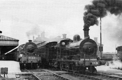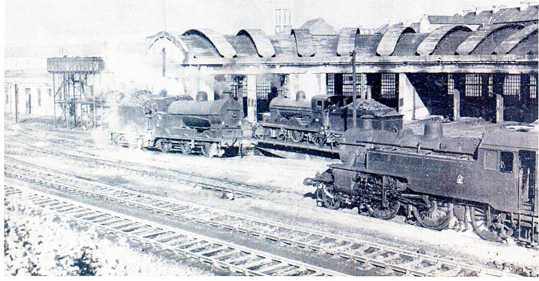 It was built of reinforced concrete & the eventual demolition of Portadown shed required the use of explosives by the Army.The shed was situated beside Portadown Junction, between the lines to Dublin & Clones. The engines are from left -SG3 class 0-6-0 No. 35 (ex-GN No.41), U class 4-4-o No.66 "Meath"(ex-GN No.201) & WT class 2-6-4T No.54