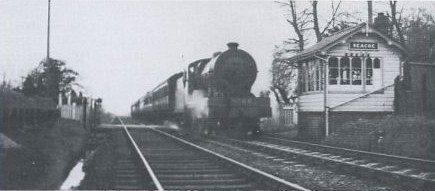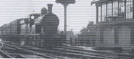 Photo shows engine & carriages as they approach the South Signal Cabin