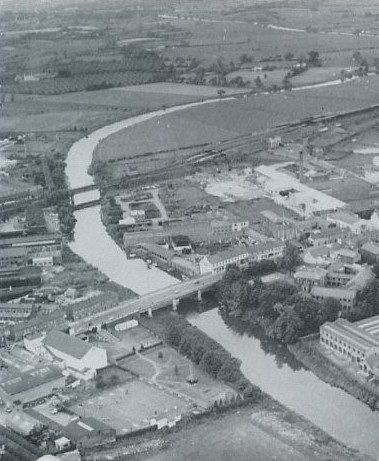 Reproduced from an old drawing found in a byre in the County somewhere. Obviously drawn from the railway bridge. Note the Hamilton & Robb factory on the Edenderry side. Our thank to Mr R Brady for permission to use the photo.
